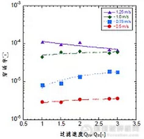 圖3 過濾速度與穿透率的關(guān)系[2]