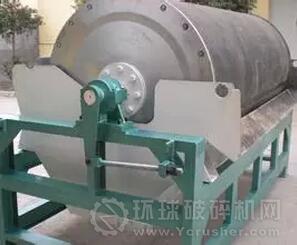 永磁筒式強(qiáng)磁選機(jī)采用擠壓式磁系結(jié)構(gòu),磁系外面是不銹鋼圓筒,簡(jiǎn)體表面磁場(chǎng)強(qiáng)度可達(dá)0.9 T以上。和永磁輥式強(qiáng)磁選機(jī)相比,該機(jī)具有以下幾個(gè)優(yōu)點(diǎn):一是物料通過(guò)振動(dòng)給料器直接給到磁筒表面,克服了永磁輥式磁選機(jī)超薄皮帶易磨損和更換的問(wèn)題,磁場(chǎng)利用率較高;二是磁筒直徑可以設(shè)計(jì)得較大,目前已達(dá)900柵。缺點(diǎn)是磁場(chǎng)強(qiáng)度偏低,處理能力偏小。