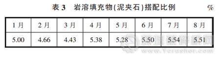 2)1 號(hào)和 2 號(hào)破碎機(jī)的巖溶填充物的搭配比例在料坑增高以后顯著提高,達(dá)到 5.50%以上,見表 3。