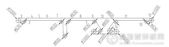 輸送機組成,其頭尾高差130 米,輸送機有4 個半徑為1000m 不等圓弧轉(zhuǎn)彎段,承擔(dān)650 萬噸成品砂石骨料轉(zhuǎn)運任務(wù)。本文從長膠系統(tǒng)布置、工藝設(shè)計、設(shè)備選型等方面對長膠帶機進行分析和介紹。