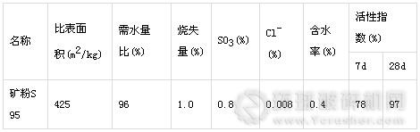 礦粉:江蘇沙鋼廠產(chǎn)的S95礦粉,其技術(shù)性能指標(biāo)見表3;