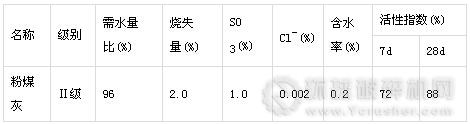 粉煤灰:浙江長(zhǎng)興電廠產(chǎn)的粉煤灰(Ⅱ級(jí)),其技術(shù)性能指標(biāo)見表2;