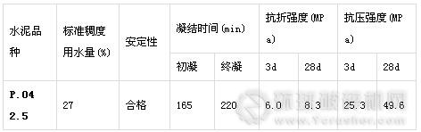 水泥:安吉南方水泥廠生產(chǎn)P.042.5水泥,其技術(shù)生能指標(biāo)見表1;