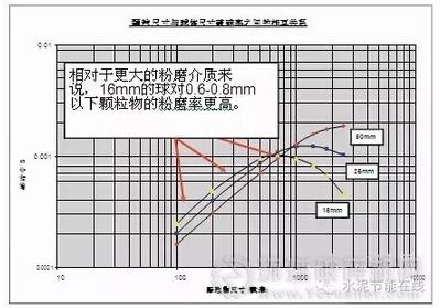 研究結(jié)果表明,如果將平均球徑從25mm降至15mm,填隙率將增加10%-20%,從而導(dǎo)致粉磨效率下降5%-7%左右。因此,采用尺寸小的介質(zhì)所帶來(lái)的凈效果受到損害。此外,如果存在粗顆粒,如果糊球很?chē)?yán)重時(shí),利用更小粉磨介質(zhì)的粉磨效率將進(jìn)一步被削弱。