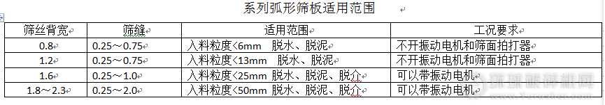 2、高效弧形篩板使用范圍