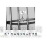 濾袋框架上的所有焊點(diǎn)必須牢固,不允許有脫焊、假焊、虛焊和漏焊。采用經(jīng)過(guò)改良的框架焊接機(jī),可使框架在焊接過(guò)程中焊接參數(shù)穩(wěn)定,確保焊接質(zhì)量。并且為了避免二次焊接造成的焊接質(zhì)量下降,在框架的橫向支撐圈焊接過(guò)程中,均應(yīng)將橫圈本身的焊點(diǎn)放在兩根豎筋的中間位置(如圖7),以保證橫圈與豎筋之間的焊接均為一次焊接,從而可最大程度地保證框架焊接的強(qiáng)度和質(zhì)量。