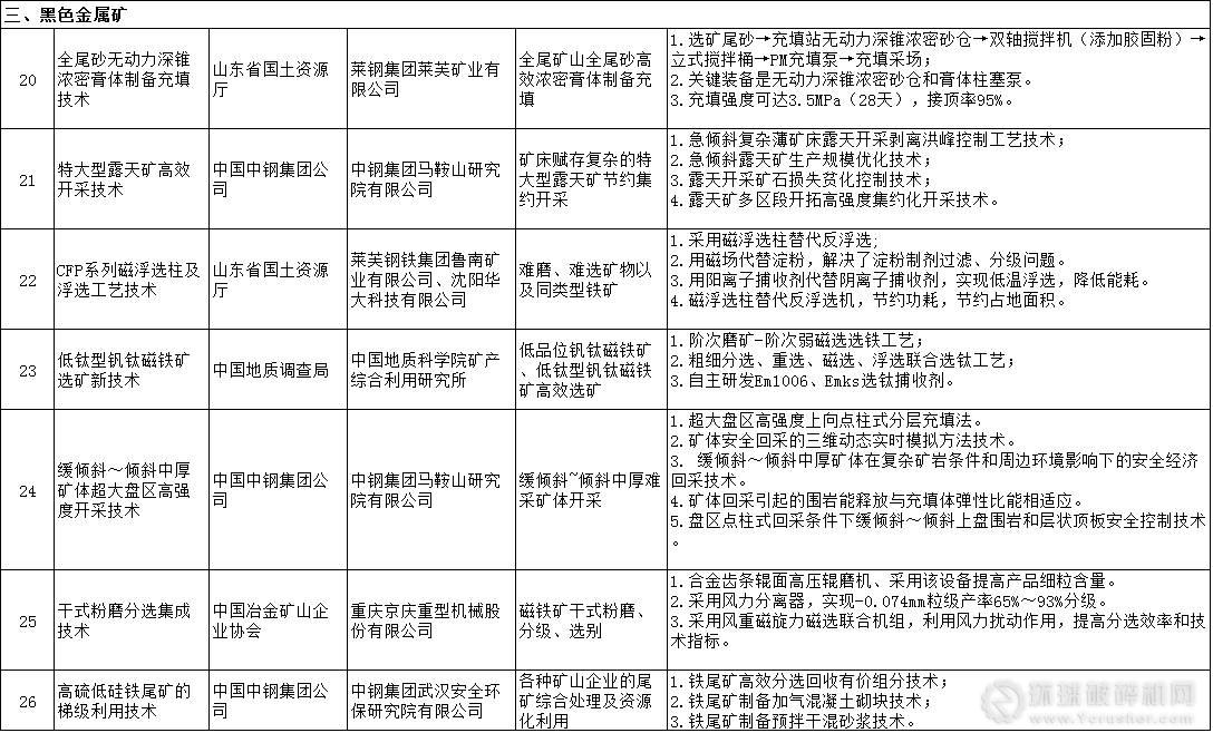 為貫徹落實《中共中央 國務院關(guān)于加快推進生態(tài)文明建設的意見》和《生態(tài)文明體制改革總體方案》,踐行創(chuàng)新發(fā)展和綠色發(fā)展理念,加快示范推廣先進適用技術(shù),推動科技創(chuàng)新,促進礦產(chǎn)資源節(jié)約與高效利用,提高礦產(chǎn)資源開發(fā)利用水平,按照《國土資源部關(guān)于推廣先進適用技術(shù)提高礦產(chǎn)資源節(jié)約與綜合利用水平的通知》(國土資發(fā)〔2012〕154號)和《國土資源部辦公廳關(guān)于推薦礦產(chǎn)資源節(jié)約與綜合利用先進適用技術(shù)的通知》(國土資廳函〔2016〕1396號)要求,經(jīng)各省(區(qū)、市)國土資源主管部門和有關(guān)中央企業(yè)組織推薦、專家評選及社會公示,確定了第五批礦產(chǎn)資源節(jié)約與綜合利用先進適用技術(shù)推廣目錄,現(xiàn)予以公告。