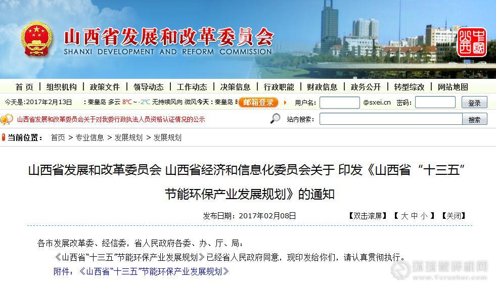 近日,山西省發(fā)展和改革委員會、山西省經(jīng)濟和信息化委員會關(guān)于印發(fā)《山西省“十三五”節(jié)能環(huán)保產(chǎn)業(yè)發(fā)展規(guī)劃》的通知。