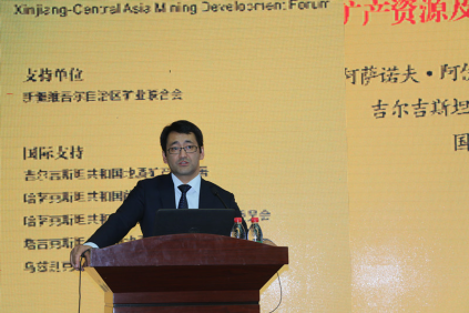 吉爾吉斯斯坦國務(wù)秘書阿薩諾夫·阿伊別克·卡特拉維奇在大會現(xiàn)場就本國的礦產(chǎn)資源及投資政策介紹