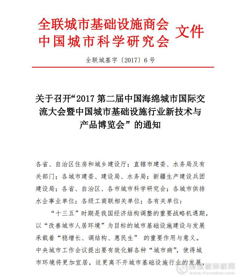 關(guān)于召開“2017 第二屆中國海綿城市國際交流大會暨中國城市基礎(chǔ)設(shè)施行業(yè)新技術(shù)與產(chǎn)品博覽會”的通知