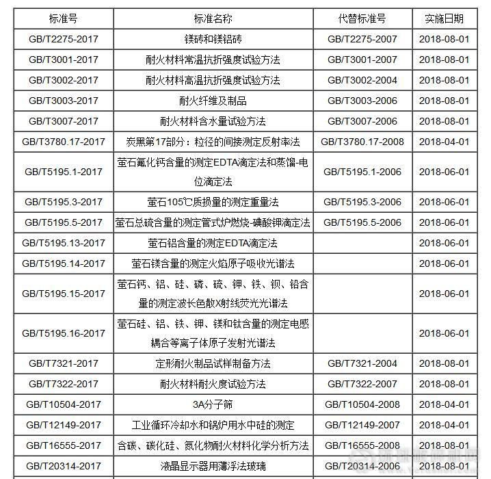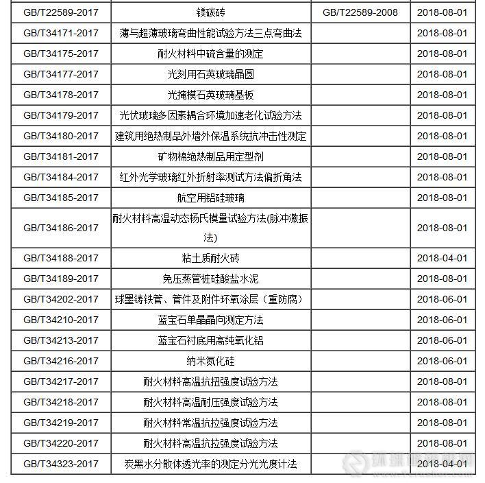 國家質(zhì)量監(jiān)督檢驗(yàn)檢疫總局、國家標(biāo)準(zhǔn)化管理委員會(huì)批準(zhǔn)螢石、耐火材料等等300項(xiàng)國家標(biāo)準(zhǔn)和1項(xiàng)國家標(biāo)準(zhǔn)修改單,現(xiàn)予以公布。部分內(nèi)容如下: