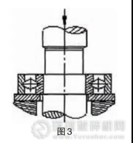 3)頂壓法:利用螺旋C型夾頭、機(jī)械式壓力機(jī)、液壓壓力機(jī)或千斤頂?shù)裙ぞ吆驮O(shè)備進(jìn)行拆卸。適用于過盈配合的軸承,如圖3所示。