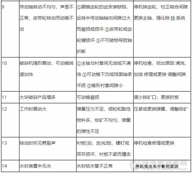 在破碎過程中,動(dòng)錐襯板與定錐襯板不斷磨損,使之排礦口逐漸增大。為了保證一定的產(chǎn)品粒度,就要隨著磨損情況,不斷的調(diào)整排礦口尺寸。排礦口的調(diào)整,是借助于調(diào)整環(huán)與支承套間的鋸齒形螺紋升、降定錐襯板來實(shí)現(xiàn)的。 為了使齒形螺紋得到潤滑,以及調(diào)整和拆裝方便,螺紋必須有足夠的間隙。 調(diào)整后的排礦口,可采用鋼絲系鉛球的方法,通過破碎腔到排礦口處測(cè)量排礦口尺寸。經(jīng)過加工的新襯板測(cè)量一點(diǎn)即可,未經(jīng)加工或已磨損的襯板應(yīng)測(cè)量6~8點(diǎn)。排礦口達(dá)到尺寸要求后,利用鎖緊缸將調(diào)整環(huán)鎖緊,否則不允許啟動(dòng)。