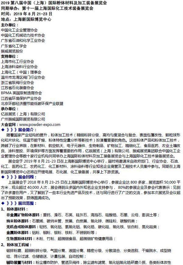 2019第八屆中國(上海)國際粉體材料及加工裝備展覽會