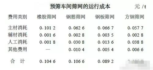 四種篩網(wǎng)運(yùn)行成本比較