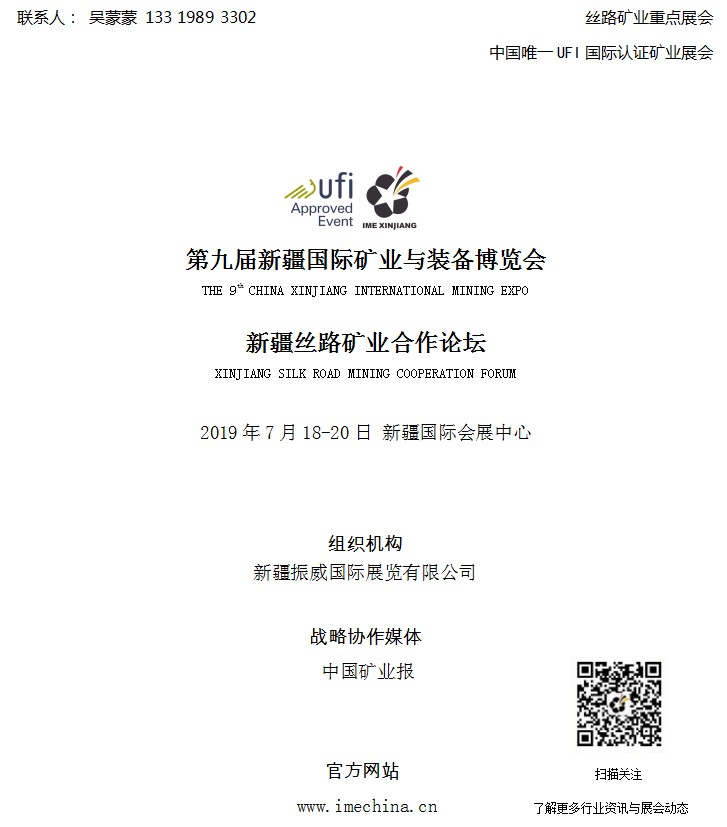 新疆礦博會(huì)已成功舉辦至第九屆,是我國(guó)礦業(yè)建設(shè)和國(guó)際產(chǎn)能合作的重要平臺(tái),每年有來自山東、吉林、河南、湖南、青海等25個(gè)省市(自治區(qū))的國(guó)土、礦業(yè)單位以及哈薩克、吉爾吉斯、俄羅斯、塔吉克、烏茲別克等“一帶一路”沿線國(guó)家的礦業(yè)管理部門和企業(yè)代表參展參會(huì),專業(yè)觀眾達(dá)13000余人。在各方的支持和努力下,新疆礦博會(huì)已經(jīng)發(fā)展成為我國(guó)“一帶一路”礦業(yè)領(lǐng)域的重點(diǎn)展會(huì),也是中國(guó)礦業(yè)領(lǐng)域唯一獲得國(guó)際展覽業(yè)聯(lián)盟UFI認(rèn)證的行業(yè)盛會(huì)。