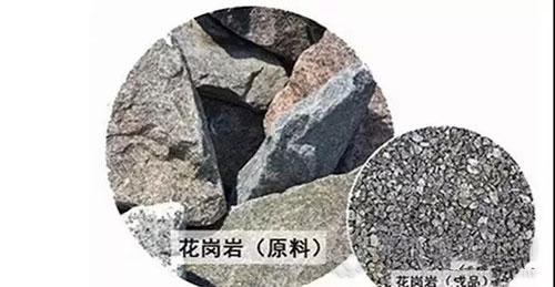 花崗巖是優(yōu)質(zhì)的建筑石料,其結(jié)構(gòu)均勻,質(zhì)地堅(jiān)硬,顏色美觀,密度為2790~3070kg/m³,抗壓強(qiáng)度為1000~3000kg/cm²,彈性模量為1.3~1.5x106kg/cm³,吸水率為0.13%,肖氏硬度>HS70,比重2.6~2.75。對(duì)于這類硬質(zhì)巖石一般采用粉碎工藝再進(jìn)行后續(xù)使用。