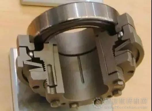 安全聯(lián)軸器包含一個(gè)液壓扭矩設(shè)定系統(tǒng)。通過(guò)調(diào)節(jié)液壓壓力釋放扭矩,可以設(shè)定需要的限位。當(dāng)超過(guò)預(yù)先設(shè)定扭矩時(shí),安全聯(lián)軸器松開(kāi),剪切管的頂部被剪切環(huán)剪斷,釋放聯(lián)軸器內(nèi)的油壓,聯(lián)軸器可以在軸上自由轉(zhuǎn)動(dòng)。由于設(shè)計(jì)的原因,安全聯(lián)軸器有一個(gè)有限的能力來(lái)吸收其他類(lèi)型的載荷。例如屈服扭矩和徑向扭矩,由于這個(gè)原因,安全聯(lián)軸器不能吸收調(diào)節(jié)缺陷。當(dāng)破碎機(jī)腔內(nèi)突然出現(xiàn)硬物(特別是大型鐵件)時(shí),聯(lián)軸器承受的扭矩就會(huì)超過(guò)它的極限,造成聯(lián)軸器抱死。