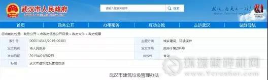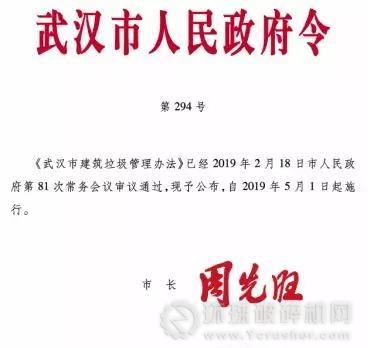 據(jù)了解,《武漢市建筑垃圾管理辦法》(市人民政府令第294號)(以下簡稱《辦法》)已經(jīng)武漢市人民政府第81次常務(wù)會議審議通過,自2019年5月1日起施行。