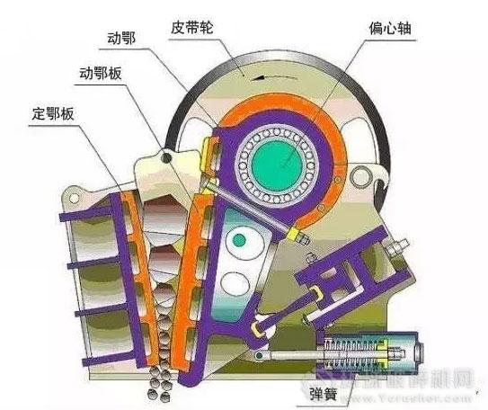 顎式破碎機工作環(huán)境惡劣,工作負荷較大,經(jīng)常會因為入料不均或較硬的不可破碎物進入破碎腔而出現(xiàn)突然的大幅度超載險情。因此顎破都有過載保護裝置。