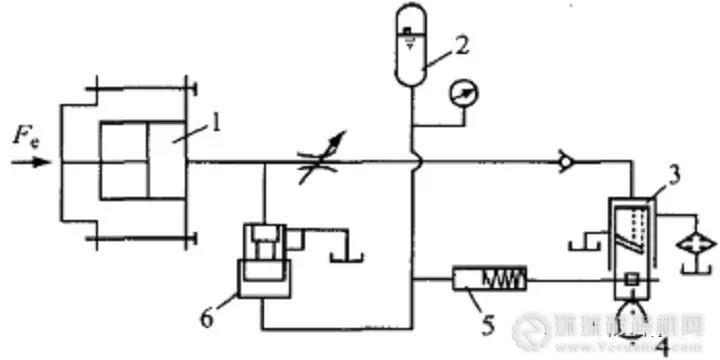 圖1 顎式破碎機的液壓過載保護裝置原理圖