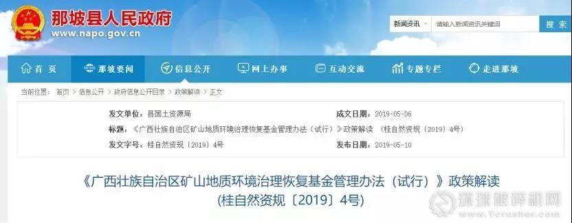 2017年12月原自治區(qū)國(guó)土資源廳發(fā)布了《廣西壯族自治區(qū)國(guó)土資源廳關(guān)于停止收繳礦山地質(zhì)環(huán)境治理恢復(fù)保證金的通知》(桂國(guó)土資發(fā)〔2017〕56號(hào)),2018年9月原自治區(qū)國(guó)土資源廳、自治區(qū)財(cái)政廳、原自治區(qū)環(huán)境保護(hù)廳聯(lián)合發(fā)文《廣西壯族自治區(qū)國(guó)土資源廳 廣西壯族自治區(qū)財(cái)政廳 廣西壯族自治區(qū)環(huán)境保護(hù)廳關(guān)于清退礦山地質(zhì)環(huán)境恢復(fù)保證金有關(guān)事項(xiàng)的通知》(桂國(guó)土資發(fā)〔2018〕65號(hào)),明確要求退還礦山企業(yè)的礦山環(huán)境治理恢復(fù)保證金,以基金的方式籌集治理恢復(fù)資金。