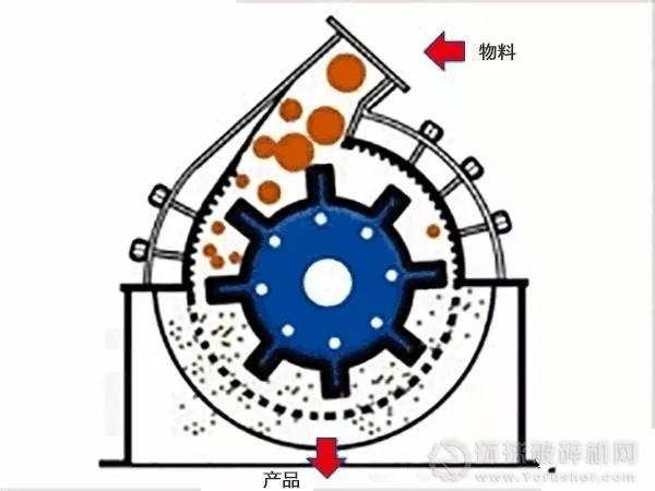 缺點:襯板磨損快,產品粒形不好,針片狀較多,產量低,需強制給料;