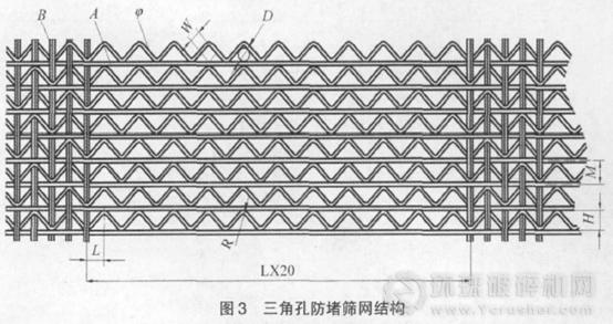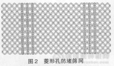 (2)采用菱形孔防堵篩網(wǎng)(如圖2所示),采用這種篩網(wǎng),它是用相鄰2根都有微小振動(dòng)的相同篩條制作而成,有較好的防堵孔效果。