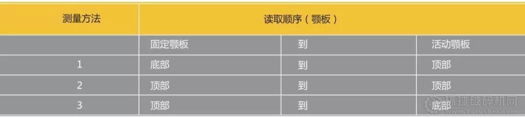 破碎腔底部以直線測量。排料口測量必須遠離磨損部位。