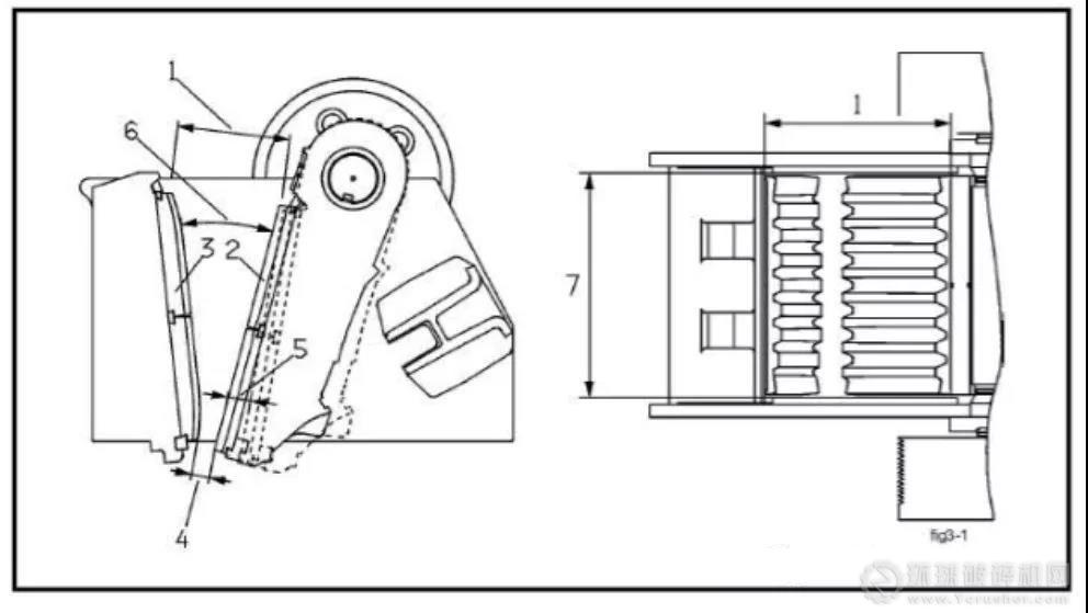 嚙角:固定鄂板和活動鄂板之間的角度。嚙角也經(jīng)常用“咬入”角表示。