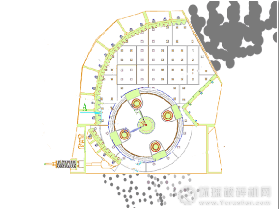 而當大塊物料進入第一排錘頭工作區(qū)內(nèi)時,由于物料重量超過該排錘頭能夠打擊破碎的范圍,錘頭邊沖擊變后退,物料就支承在錘盤上。錘盤2及反擊板6構(gòu)成單輥破碎機,在咬合角作用下產(chǎn)生部分破碎(屬于摩擦破碎,磨損大)。