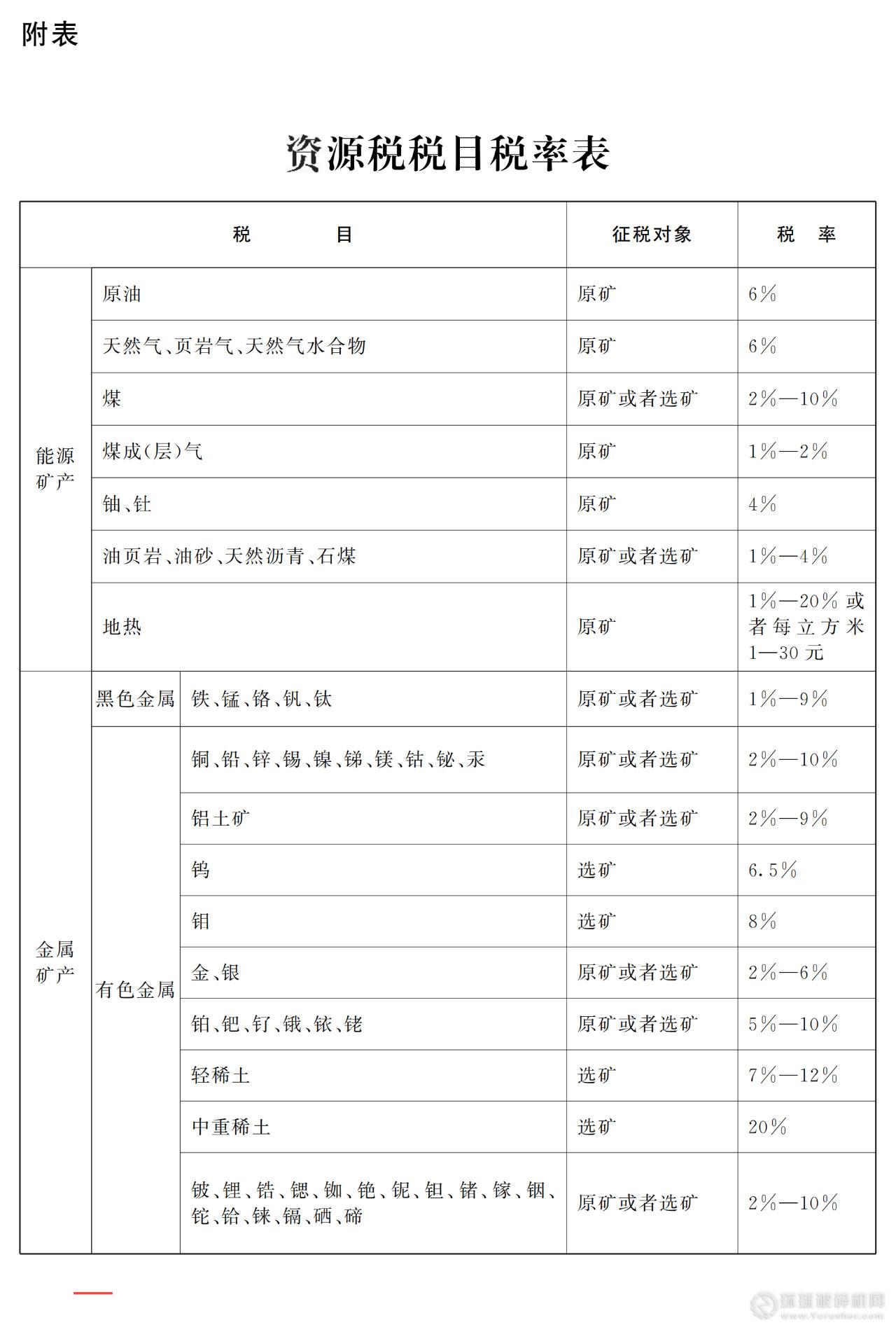 附表:資源稅稅目稅率表(以國家有關(guān)部門發(fā)布的正式法律文本為準)