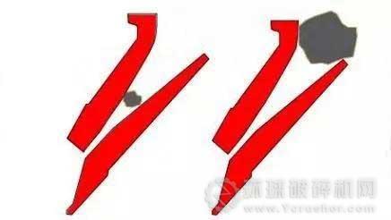 1)物料不能進(jìn)入破碎腔,產(chǎn)能嚴(yán)重縮水,入料口襯板劇烈磨損甚至毀壞。