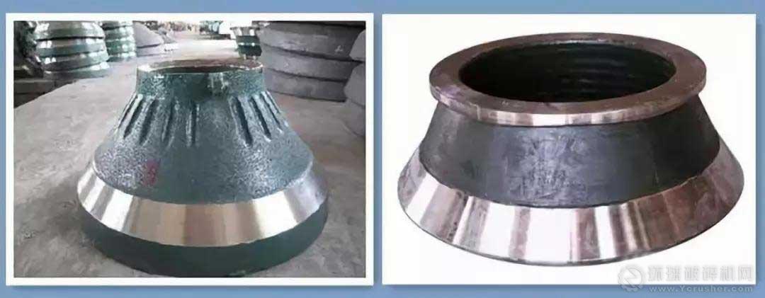 一般情況下,圓錐破的破碎壁和軋臼壁可以使用6個月,但了解到有的用戶說使用2-3個月就需要更換了。由于其壽命受多種因素的影響,會出現(xiàn)不同程度的磨損情況,當(dāng)圓錐破的破碎壁和軋臼壁的厚度磨損到三分之二、或出現(xiàn)破裂、排礦口增大到不能調(diào)整時,則需要更換。