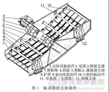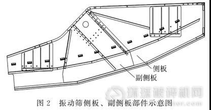 在實際生產(chǎn)中,振動篩開裂點一般有以下幾個部位:側(cè)板、底梁、激振器大梁、入料擋板組件、出料擋板組件。雖部件不同,但其處理原則相同,即對其進行加固處理以防止開裂位置延長。