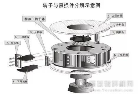 如果轉(zhuǎn)子內(nèi)部積料理想,那么對上下磨損板的磨損應(yīng)是均勻的,轉(zhuǎn)子拋料頭能得到充分利用,進(jìn)而降低生產(chǎn)消耗。如果不是,那就需要以下的調(diào)整原則和方法了。