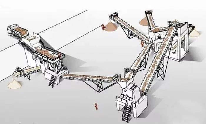 顎式破碎機,也有用戶選擇旋回破碎機做為粗碎設備。中、細碎設備一般為
