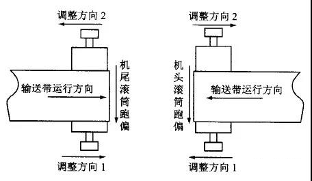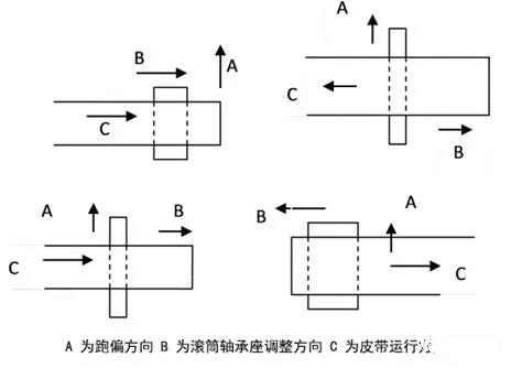 軸承座跑偏,就將哪側(cè)軸承座向膠帶的運(yùn)行方向移動,或?qū)⒘硪粋?cè)軸承座向運(yùn)行的反方向移動。但要注意,調(diào)整前必須確定滾筒的中心線與膠帶中心線的實(shí)際偏移量,以保證調(diào)整后的滾筒位置的正確。