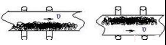 物料落入皮帶上時由于物料的重力及慣性,對皮帶產(chǎn)生沖擊,有可能造成皮帶跑偏。