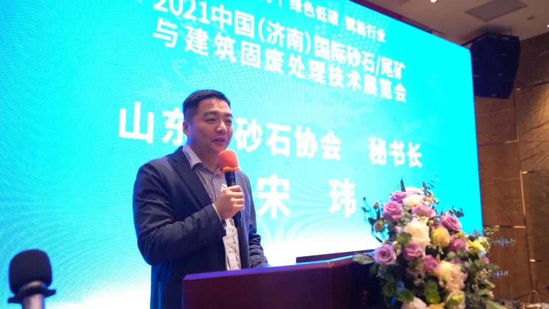 為了使砂石行業(yè)提前了解到濟南砂石展的戰(zhàn)略布局及規(guī)劃,山東省砂石協(xié)會秘書長宋瑋上臺為大家做展會介紹:2021濟南砂石展將于12月10-12日在山東國際會展中心舉辦。重點突出專業(yè)性、科技性和前瞻性,展示機制砂領(lǐng)域最新生產(chǎn)技術(shù)和發(fā)展趨勢。展會設(shè)展面積約20000平米,展商數(shù)量超300家,展示范圍涵蓋全產(chǎn)業(yè)鏈,打造砂石骨料及建筑固廢處理裝備一站式采購平臺。在展會現(xiàn)場,展商與采購商實現(xiàn)當面洽談、精準對接,現(xiàn)場簽約,幫助展商完成品牌推廣與代理合作。展會同期將舉辦多場論壇活動,千余家砂石骨料生產(chǎn)企業(yè)、混凝土生產(chǎn)企業(yè)、水泥制品企業(yè)、建設(shè)施工企業(yè)共同參與,實現(xiàn)產(chǎn)業(yè)鏈上下游同步對接合作。