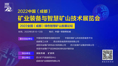 由中國地質(zhì)科學(xué)院礦產(chǎn)綜合利用研究所、成都理工大學(xué)、四川發(fā)展礦業(yè)集團(tuán)有限公司、咸陽非金屬礦研究設(shè)計(jì)院有限公司、全國非金屬礦產(chǎn)品及制品標(biāo)準(zhǔn)化委員會、中國非煤礦山科技信息服務(wù)平臺、西北有色地質(zhì)研究有限公司等眾多單位聯(lián)合發(fā)起,洲際礦山、礦庫網(wǎng)協(xié)辦,四川礦產(chǎn)資源研究中心、成都合礦會展服務(wù)有限公司聯(lián)合承辦的“2022全國(成都)綠色智慧礦山發(fā)展論壇”、2022中國(成都)礦業(yè)裝備與智慧礦山技術(shù)展覽會”將于2022年5月10日-12日在成都.中國西部博覽城隆重召開。