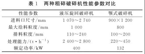 粗碎破碎機(jī)的性能參數(shù)對比: