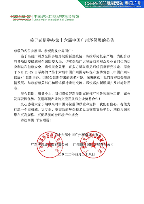 第十六屆中國廣州環(huán)保展延期后相關(guān)問題解答