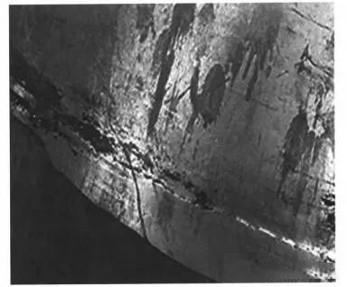 動(dòng)錐襯板裂紋如圖2所示,上、下架體止口配合面磨損如圖3所示。