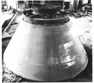 破碎機(jī)過鐵容易造成上、下架體連接螺栓松動(dòng)或剪斷,導(dǎo)致上、下架體錐形接觸面發(fā)生相對(duì)運(yùn)動(dòng),損傷止口。當(dāng)止口磨損造成上下架體問隙配合后,破碎機(jī)將無法正常運(yùn)行,只有外委修復(fù)后才能重新使用。