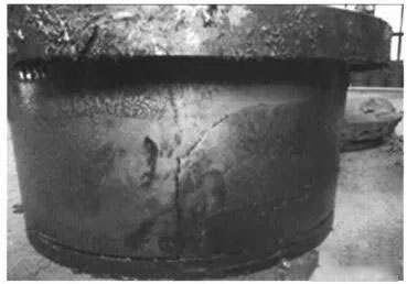 破碎機(jī)頻繁過鐵容易造成破碎機(jī)動(dòng)、定錐襯板裂紋,從而縮短襯板使用壽命,增加備件消耗。動(dòng)錐襯板裂紋如圖1所示。