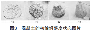 混凝土的拌合狀態(tài)、初始坍落度、擴展度,以及 1h 坍落度和 1h 擴展度見表7。初始坍落度狀態(tài)如圖3所示。