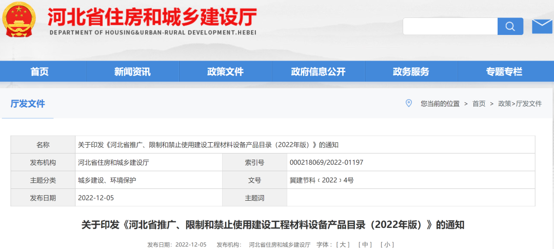 為推廣應(yīng)用綠色節(jié)能環(huán)保型材料設(shè)備,促進(jìn)建設(shè)工程品質(zhì)提升,推動(dòng)城鄉(xiāng)建設(shè)綠色發(fā)展。近日,河北省住建廳印發(fā)《河北省推廣、限制和禁止使用建設(shè)工程材料設(shè)備產(chǎn)品目錄(2022年版)》(以下簡(jiǎn)稱(chēng)《目錄》),同時(shí)廢止《河北省推廣、限制和禁止使用建設(shè)工程材料設(shè)備產(chǎn)品目錄(2018年版)》。
