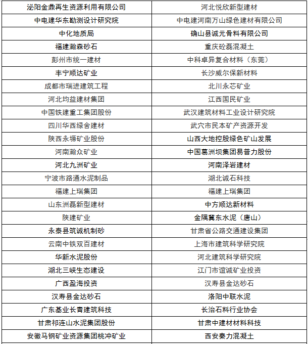河南省地質(zhì)局、湖州市自然資源和規(guī)劃局、南陽市自然資源和規(guī)劃局、駐馬店市自然資源和規(guī)劃局、許昌市自然資源和規(guī)劃局、鶴壁市自然資源和規(guī)劃局、禹州市自然資源和規(guī)劃局、郟縣自然資源和規(guī)劃局、方城縣自然資源和規(guī)劃局、中化地質(zhì)礦山總局河南地質(zhì)局、中化地質(zhì)礦山總局湖北地質(zhì)勘查院、河南建筑材料研究設(shè)計院有限責(zé)任公司、中國電建集團華東勘測設(shè)計研究院有限公司、中材(南京)礦山研究院有限公司、天津水泥工業(yè)設(shè)計研究院、蘇州中材非礦設(shè)計院、煤炭工業(yè)鄭州設(shè)計研究院、西安建筑科技大學(xué)、河南省地災(zāi)害防治和生態(tài)保護修復(fù)協(xié)會、河南省礦業(yè)協(xié)會、河南省建筑材料工業(yè)協(xié)會、湖北省砂石協(xié)會、廣東省砂石協(xié)會、河北省砂石協(xié)會、貴州省砂石協(xié)會、福建省砂石協(xié)會、遼寧省砂石協(xié)會、湖南省砂石協(xié)會、上海市砂石協(xié)會、重慶市砂石協(xié)會、江西省砂石協(xié)會、陜西省砂石協(xié)會、甘肅省砂石協(xié)會、郟縣砂石協(xié)會、焦作市投資集團有限公司、河南省大地水泥集團、湖北鄂東礦業(yè)投資集團有限公司、湖北省工建集團、中電建河南萬山綠色建材有限公司、浙江德清恒鑫投資公司、福州松下碼頭有限公司、湖北潤楊礦業(yè)發(fā)展有限公司、焦作千業(yè)新材料有限公司、武穴市東南礦業(yè)有限公司、泌陽中聯(lián)新材料有限公司、邢臺縣蘊鼎建材有限公司、駐馬店市豫龍同力水泥有限公司、固始金山石料有限公司、確山縣誠元骨料有限公司、郟縣眾和建材有限公司、郟縣中聯(lián)天廣水泥有限公司、天瑞集團股份有限公司(許昌)、禹州市錦信水泥有限公司、禹州市國泰建材有限公司、河南盛源礦業(yè)有限公司、禹州市禹鑫建材有限公司、禹州市宜鑫建材有限公司、禹州市平和建材有限公司、大連天瑞水泥有限公司、本溪三合礦業(yè)有限公司、本溪明山區(qū)馨利石灰石礦有限公司、贛州金坪石業(yè)有限公司等等;