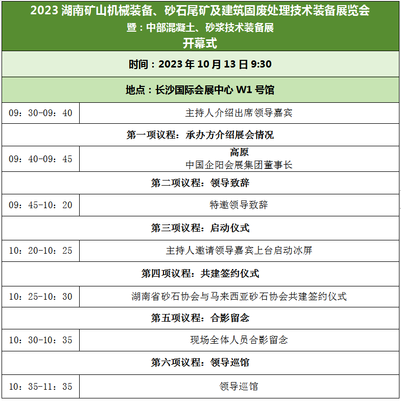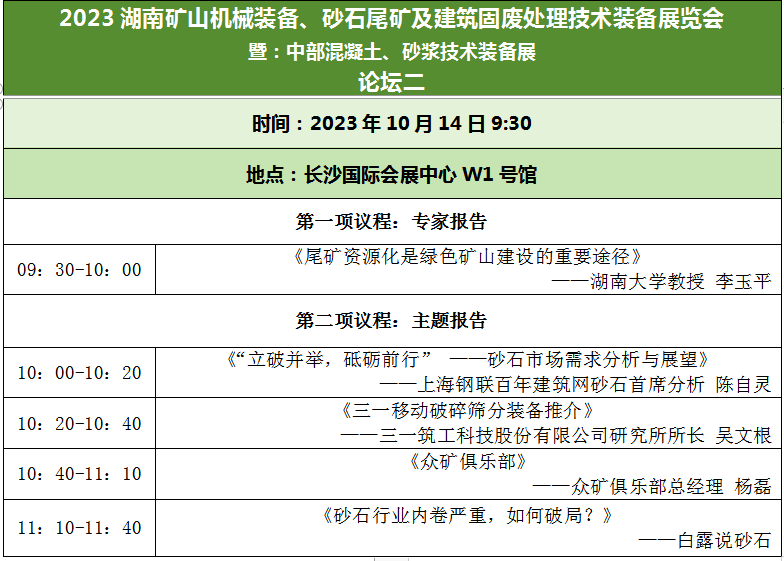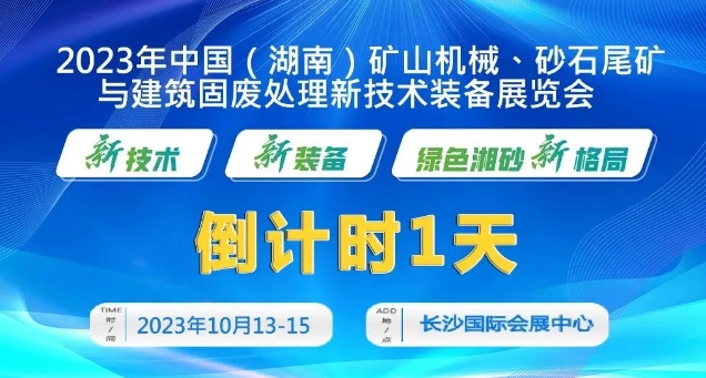 2023中國(guó)(湖南)礦山機(jī)械、砂石尾礦與建筑固廢處理暨中部混凝土、砂漿技術(shù)裝備新技術(shù)裝備展覽會(huì),將于10月13-15日在長(zhǎng)沙國(guó)際會(huì)展中心舉辦。